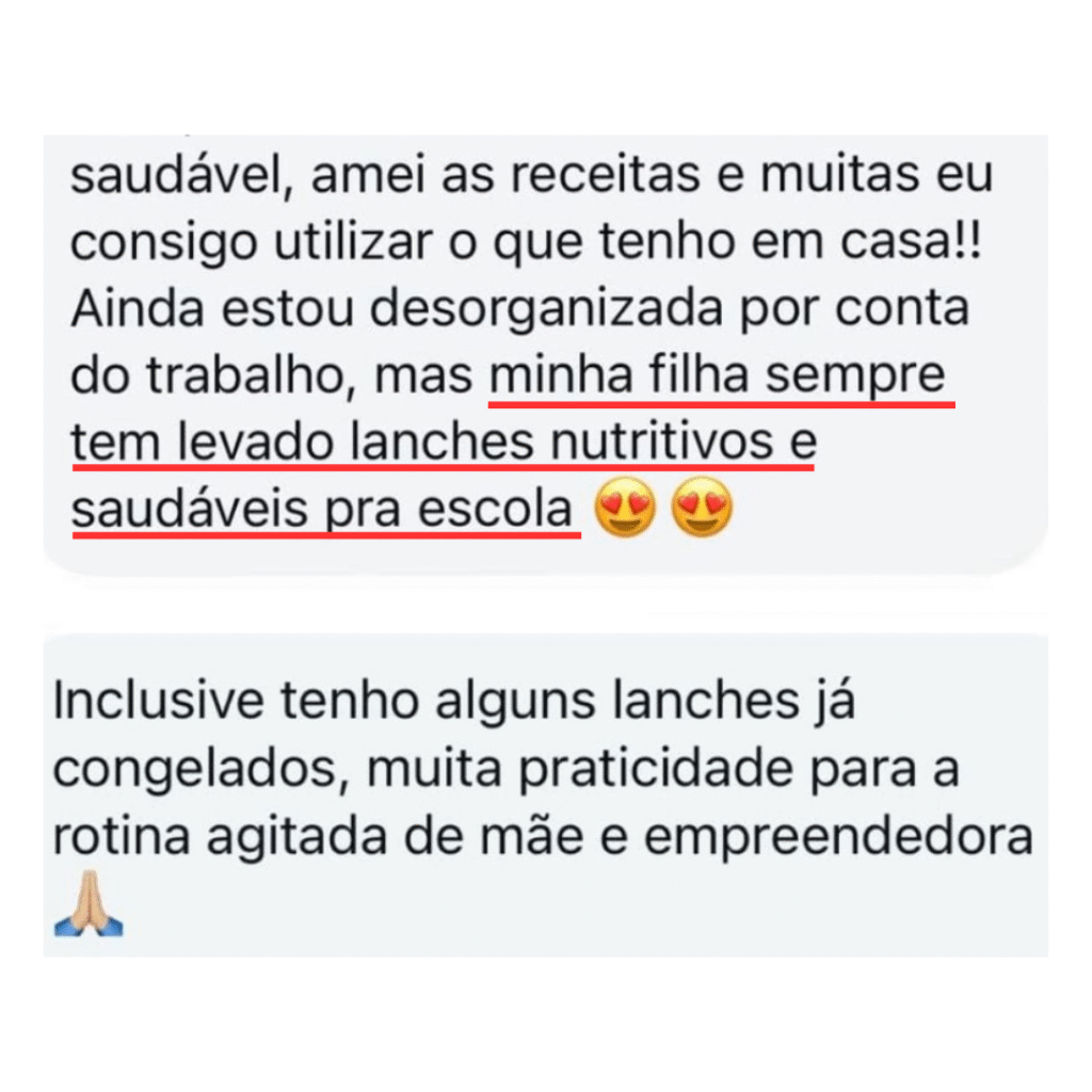 Já ajudou mais de 40 mil famílias a mandar lanches saudáveis, variados e práticos mesmo com pouco tempo, rotina puxada ou filho que não aceita nada.